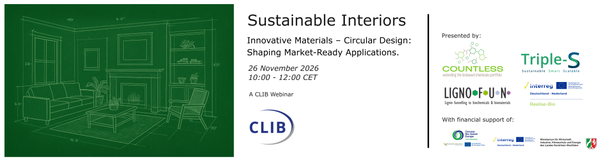 Im Rahmen des Interreg Deutschland-Nederlands-Projekts Realise-Bio laden CLIB und Oost NL Sie zu einem Webinar ein, das aktuelle Beispiel präsentieren wird, wie wir den Kreislauf schließen und aus Seitenströmen Wert schaffen können. Unsere Sprecherinnen und Sprecher stellen ihre innovativen Geschäftsmodelle vor und geben Ihnen Einblicke in ihre bisherige Entwicklung und ihre zukünftigen Ambitionen. In einer Podiumsdiskussion zoomen wir aus diesen Einzelbeispielen heraus und werfen einen Blick auf die Chancen und Auswirkungen hochwertiger Chemikalien aus Nebenströmen.